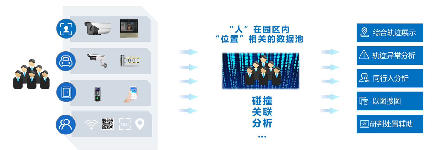 轨迹追溯:发生异常事件,快速轨迹回放,筛查到访区域